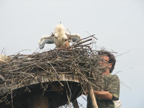 "Skontrolowano bezpośrednio kilkanaście gniazd, kilka z nich oczyszczono ze sznurków, 23 młode bociany otrzymały obrączki.