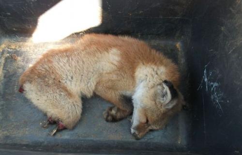 Biedny lisek. Psy odgryzły mu obie tylnie łapki... :o(