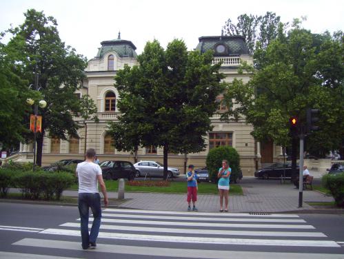 "Budynek wzniesiony na początku XX w., najprawdopodobniej według projektu znanego kaliskiego architekta Józefa Chrzanowskiego. Należał do znanego kaliskiego adwokata Jaźwińskiego. Przed wojną mieściła się tam bardzo popularna w Kaliszu kawiarnia o nazwie 'Kresowa'. Budynek w swojej architekturze jest bardzo charakterystyczny dla początku XX w. Reprezentuje taki neo styl, trochę neo renesans, trochę elementów secesji przy kopułach."