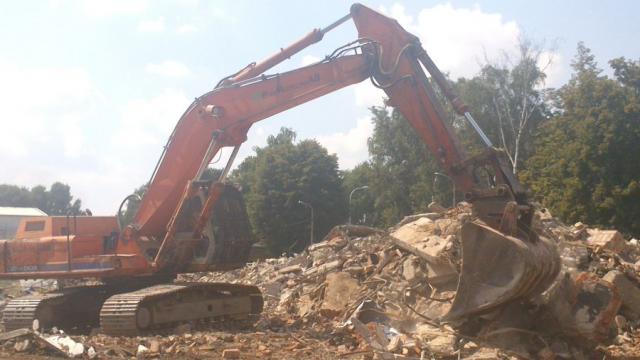 Gruz jest rozdrabniany i trafi na budowy dróg. Wyburzanie zakończy się za kilka dni.