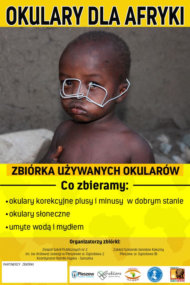 Podaruj okularom drugie życie. Oddaj je potrzebującym mieszkańcom Afryki. Taka akcja rusza właśnie w Pleszewie i okolicy. Zużyte okulary będą zbierane w szkołach, przedszkolach, kościołach.