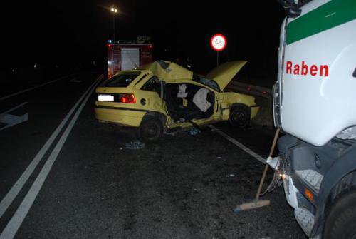 Kierowca samochodu osobowego marki Opel Astra na skrzyżowaniu Alei Wojska Polskiego z ulicą Tadeusza Kościuszki nie zatrzymał sie przed znakiem stop i uderzył w ciężarówkę. Wypadek wydarzył się około godziny pierwszej w nocy. Dwie osoby - pasażerowie samochodu osobowego - w stanie ciężkim zostały odwiezione do miejscowego szpitala. Kobieta - pasażerka "osobówki" zmarła w szpitalu.