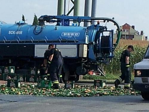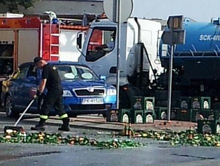 I znów kaliskie ulice spłynęły piwem - tym razem tir przewożący złocisty trunek, zgubił ładunek na Rondzie Solidarności. To już trzecie podobne zdarzenie w tym roku. Najpierw piwo rozlało się przy wjeździe na obwodnicę Nowych Skalmierzyc, potem - na ulicy Łódzkiej, na wysokości więzienia. Kolejny raz tir zgubił ładunek w poniedziałkowe popołudnie. Z naczepy ciężarowego auta na ulicę wypadło kilkadziesiąt skrzynek, a kilkaset butelek rozbiło się w drobny mak. Jak się okazało - ładunek tira był najprawdopodobniej źle zabezpieczony. Kierowca ciężarówki został ukarany 300-złotowym mandatem. Rozbite szkło i lepką ciecz z jezdni, jeszcze przez kilkadziesiąt minut po piwnej kraksie, usuwali kaliscy strażacy.