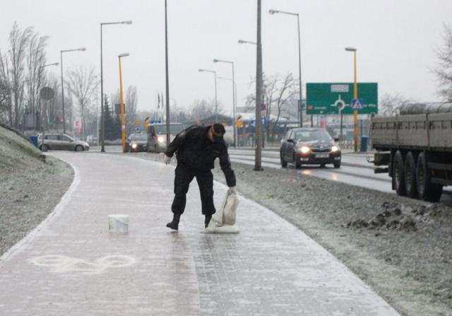 "Nastawiliśmy się bardziej na przypominanie i własną pomoc, nie na karanie, bo wiemy, że sytuacja jest trudna. W poniedziałek działało 20 strażników, we wtorek 16 funkcjonariuszy i dodatkowe 7 osób - to pracownicy z urzędu pracy, oraz osoby odpracowujące wyroki. Patrol ma w samochodzie worki z solą. Jeżdżą strażnicy i dowożą te osoby do zgłoszonych miejsc. Sypiemy solą bądź paskiem chodniki".