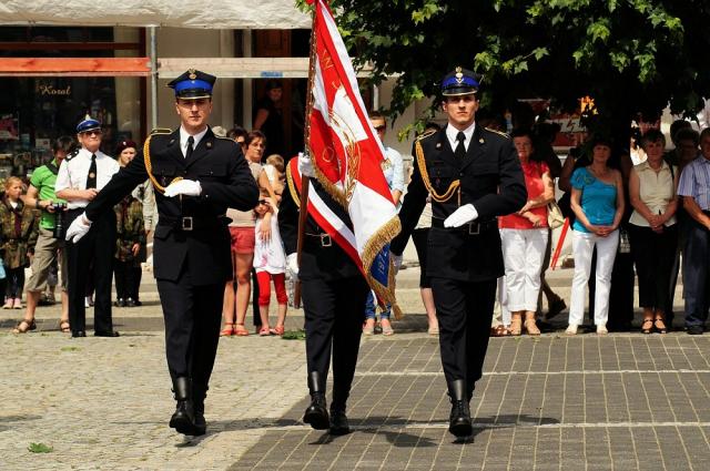 Komenda Powiatowa Państwowej Straży Pożarnej w Ostrzeszowie ma swój sztandar. Uroczyste wręczenie sztandaru odbyło się w niedziele na ostrzeszowskim rynku. Ceremonii towarzyszyła defilada wojska i straży pożarnej, a także korowód samochodów pożarniczych. "Jest to pierwszy sztandar w historii naszej komendy" - powiedział Radiu Centrum komendant powiatowy ostrzeszowskiej straży pożarnej, bryg. Tomasz Mak: