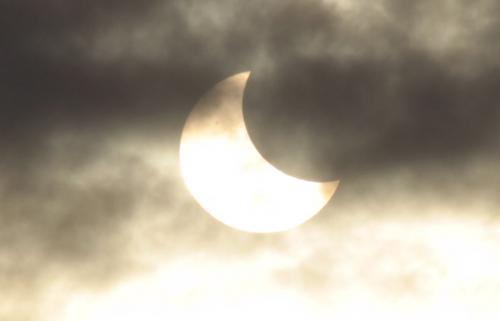 Taki widok zdarza się nieczęsto - we wtorkowy poranek można było obserwować zaćmienie Słońca. Choć synoptycy przewidywali zachmurzenie - do mieszkańców naszego regionu uśmiechnął się los - i Słońce było widać znakomicie. Nie brakowało zatem ciekawskich, zadzierających głowy ku niebu.