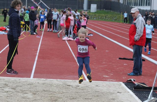 na fot.: Swoich sił w skoku w dal próbują także najmłodsi adepci królowej sportu.