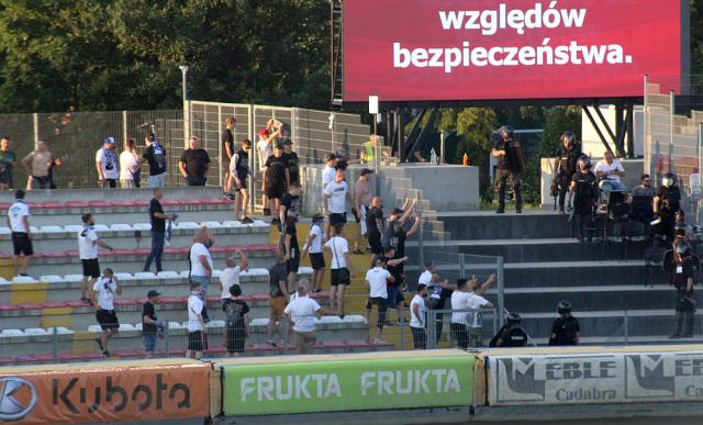 na fot.: Obrazki znane dotąd raczej ze stadionów piłkarskich miały miejsce na meczu żużlowym w Ostrowie.