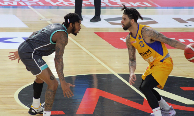 na fot. Josh Perkins (z prawej) rozgrywający BM Stali Ostrów