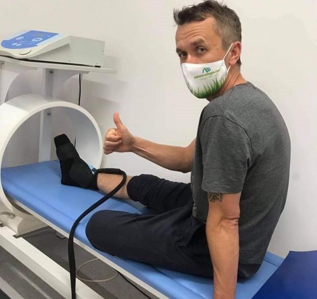 na fot.: Grzegorz Walasek na zabiegach rehabilitacyjnych / fot. facebook NEWREH